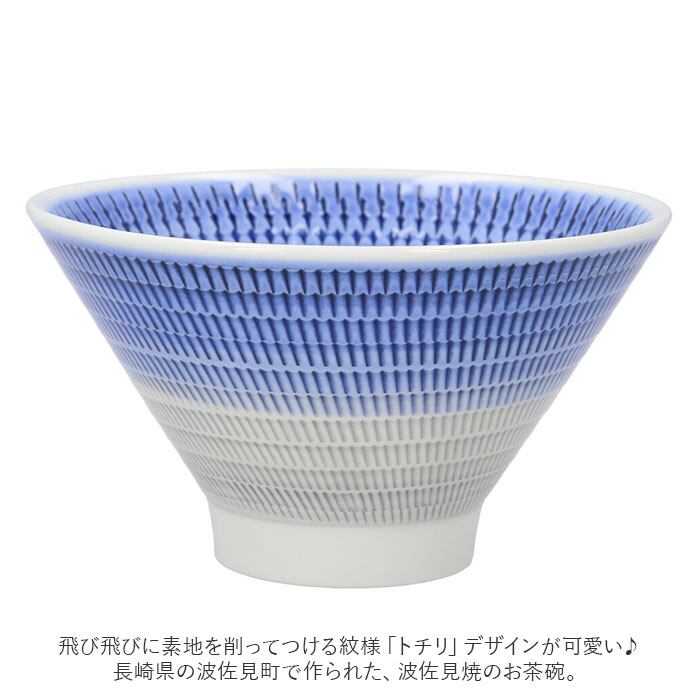・飛び飛びに素地を削ってつける紋様「トチリ」デザインが可愛い♪長崎県の波佐見町で作られた、波佐見焼のお茶碗。