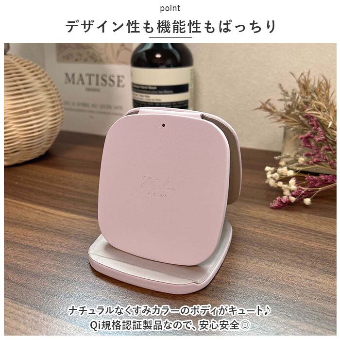 ・ナチュラルなくすみカラーのボディがキュート♪Qi規格認証製品なので、安心安全◎