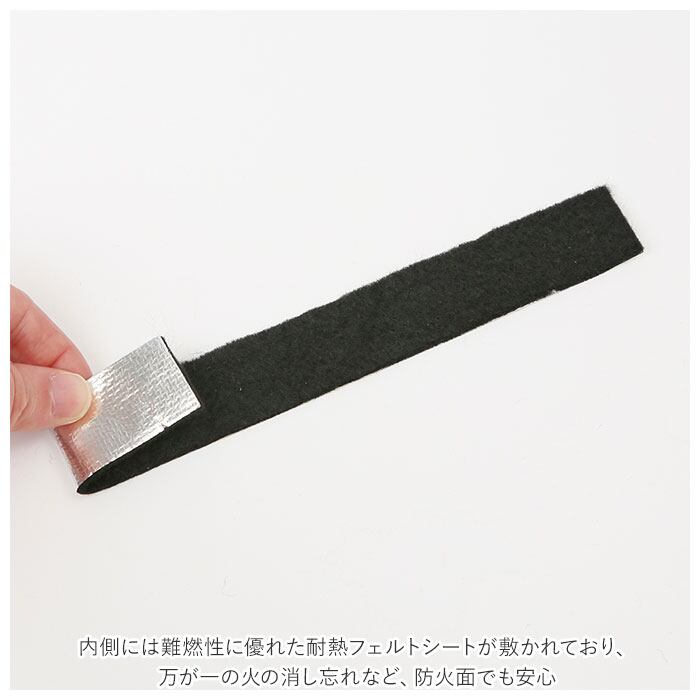 ・内側には難燃性に優れた耐熱フェルトシートが敷かれており、万が一の火の消し忘れなど、防火面でも安心。