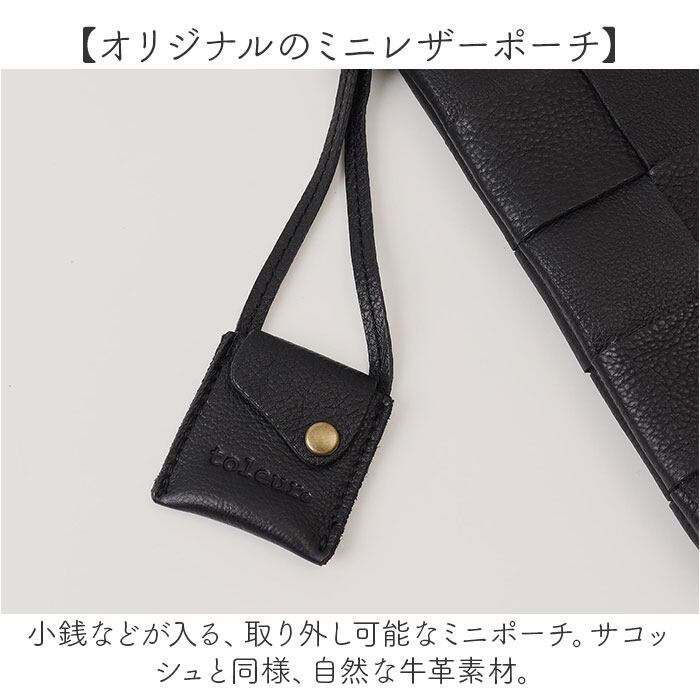 ・小銭などが入る、取り外し可能なミニポーチ。サコッシュと同様、自然な牛革素材。