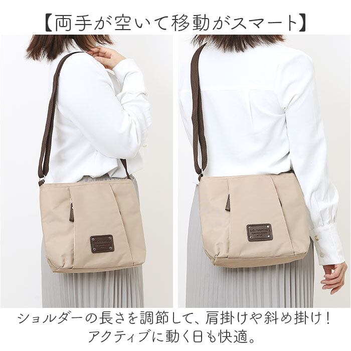 ・ショルダーの長さを調節して、肩掛けや斜め掛け!アクティブに動く日も快適。