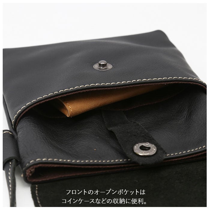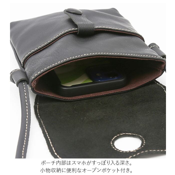 ・ポーチ内部はスマホがすっぽり入る深さ。小物収納に便利なオープンポケット付き。