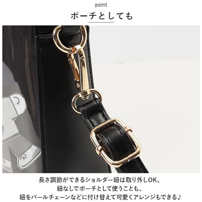 ・長さ調節ができるショルダー紐は取り外しOK。紐なしでポーチとして使うことも、紐をパールチェーンなどに付け替えて可愛くアレンジもできる♪