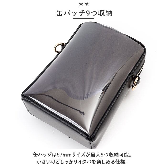 ・缶バッジは57mmサイズが最大9つ収納可能。小さいけどしっかりイタバを楽しめる仕様。