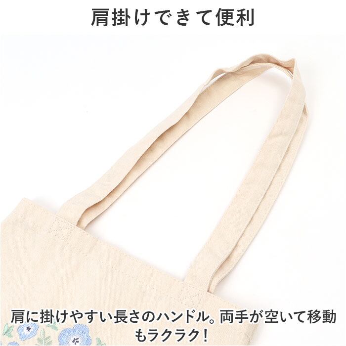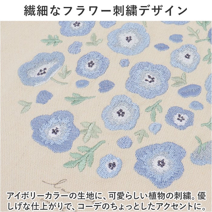 ・アイボリーカラーの生地に、可愛らしい植物の刺繍。優しげな仕上がりで、コーデのちょっとしたアクセントに。