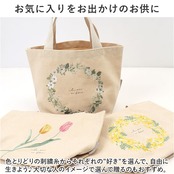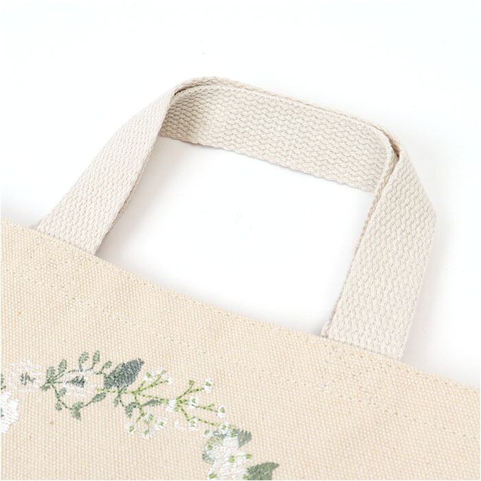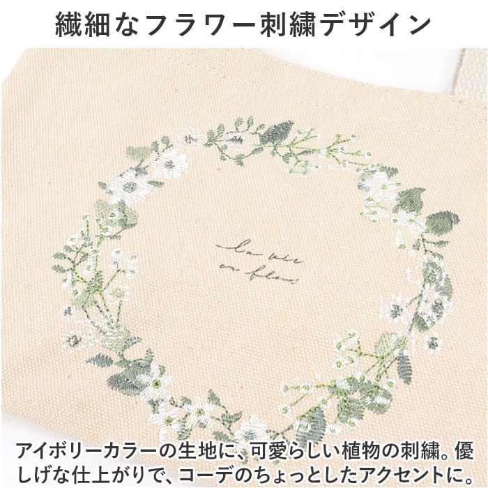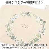 ・アイボリーカラーの生地に、可愛らしい植物の刺繍。優しげな仕上がりで、コーデのちょっとしたアクセントに。