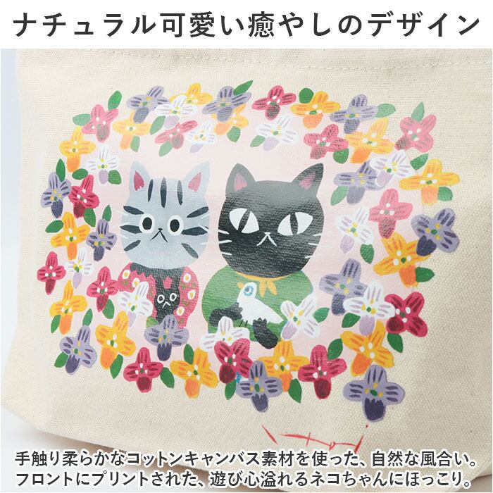 ・手触り柔らかなコットンキャンバス素材を使った、自然な風合い。フロントにプリントされた、遊び心溢れるネコちゃんにほっこり。