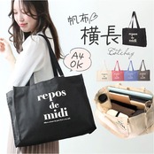 帆布横長スクエアトート