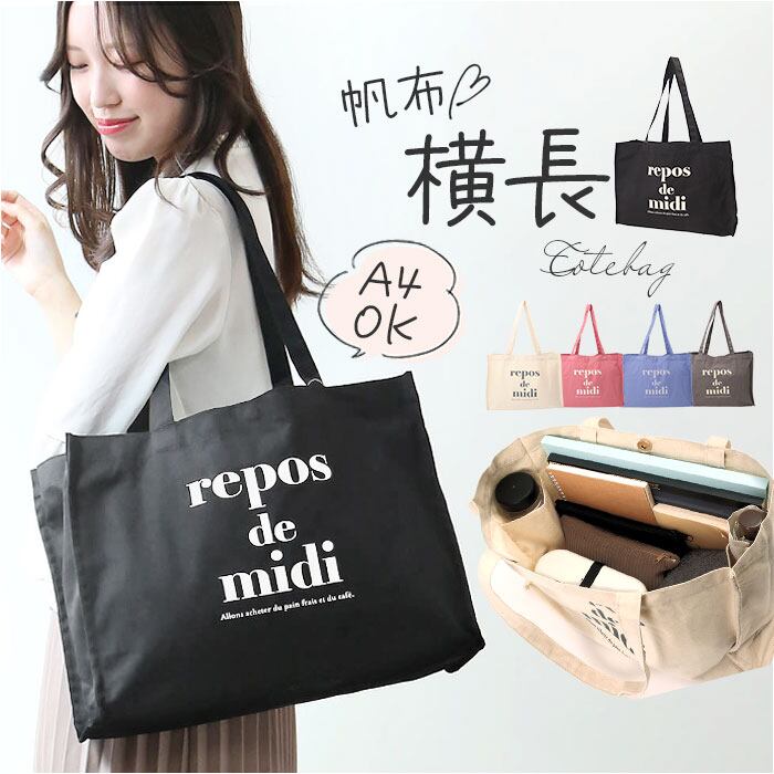 帆布 トートバッグ 通販 トート トートバック 手提げ 肩掛け スクエア 横長 無地 コットン シンプル カジュアル レディース メンズ 男女兼用 ユニセックス