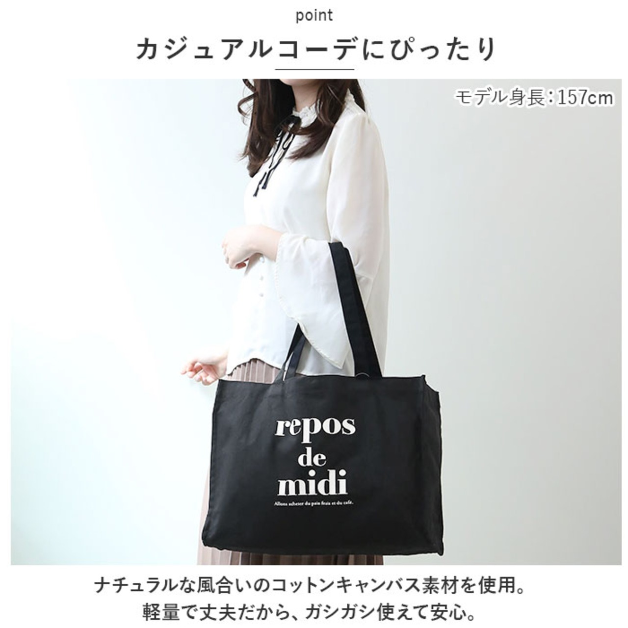 ・ナチュラルな風合いのコットンキャンバス素材を使用。軽量で丈夫だから、ガシガシ使えて安心。