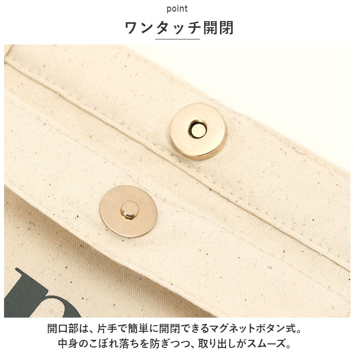 ・開口部は、片手で簡単に開閉できるマグネットボタン式。中身のこぼれ落ちを防ぎつつ、取り出しがスムーズ。