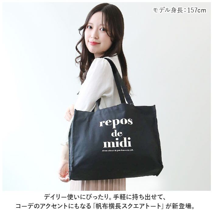 ・デイリー使いにぴったり。手軽に持ち出せて、コーデのアクセントにもなる「帆布横長スクエアトート」が新登場。