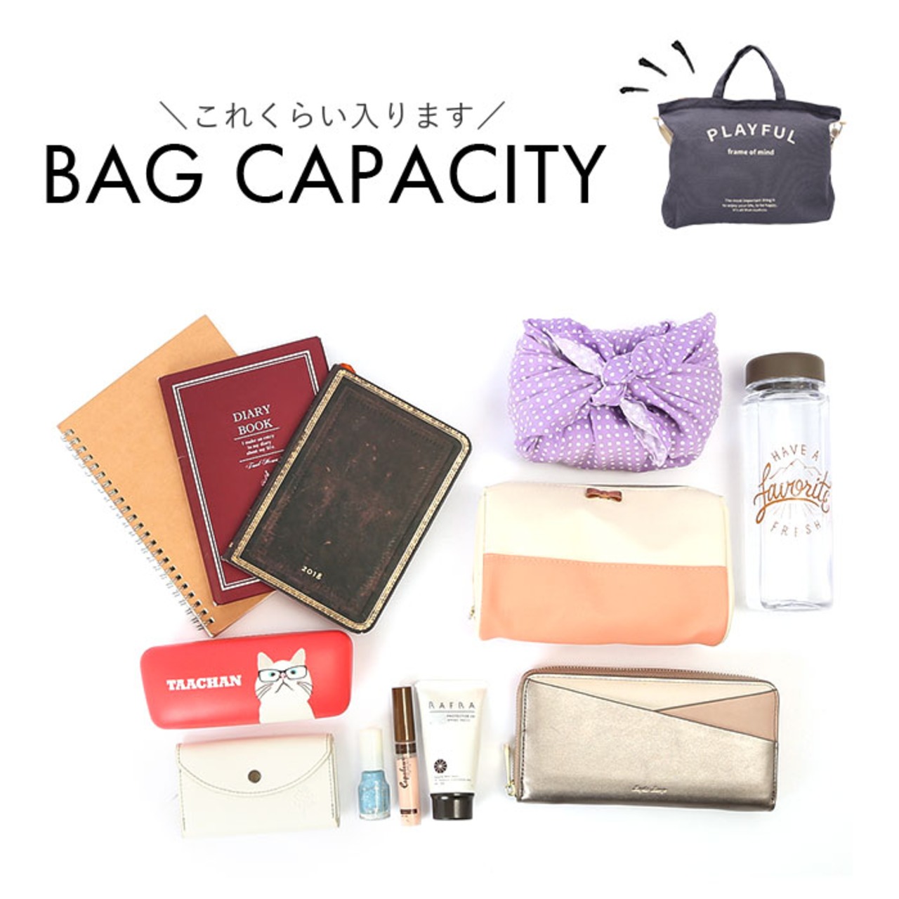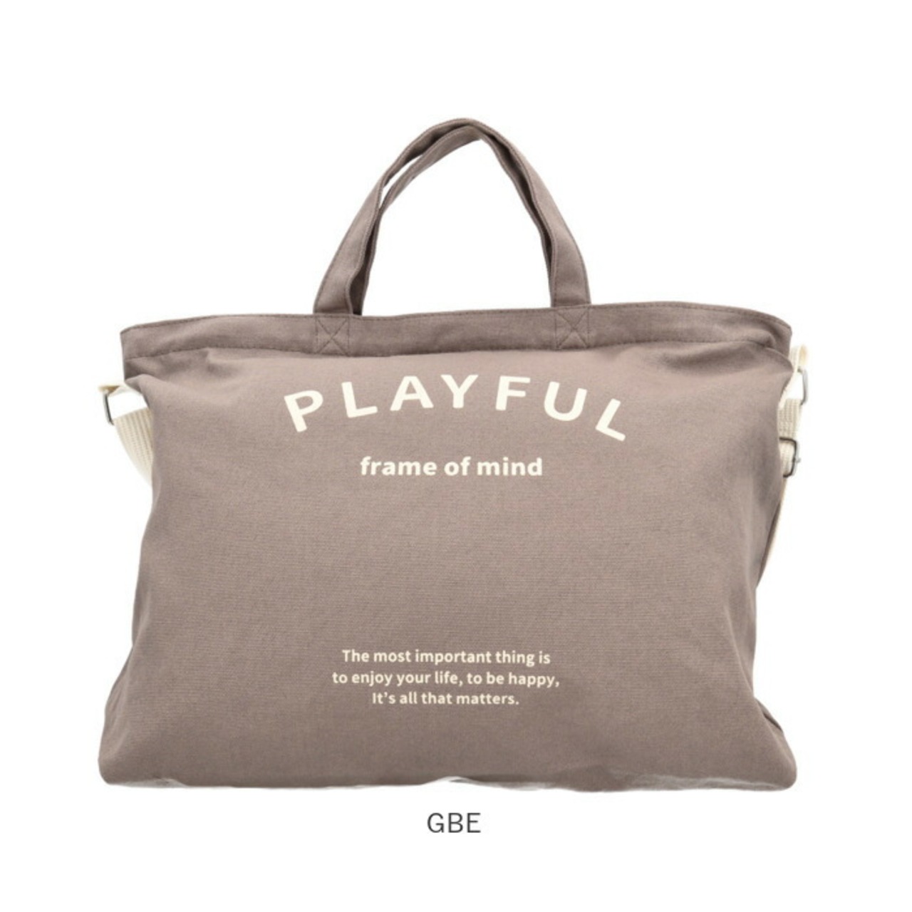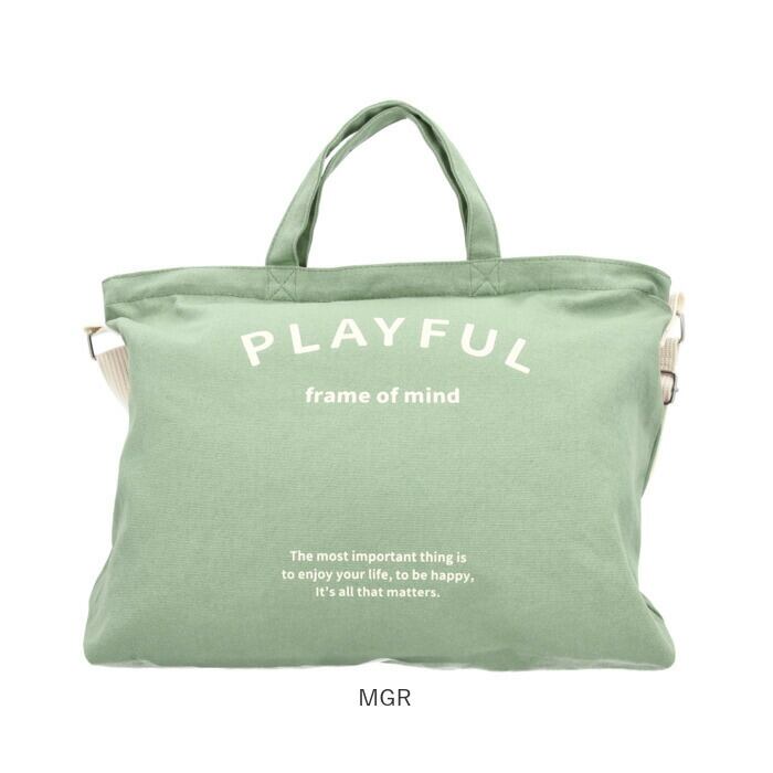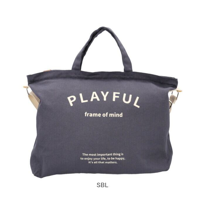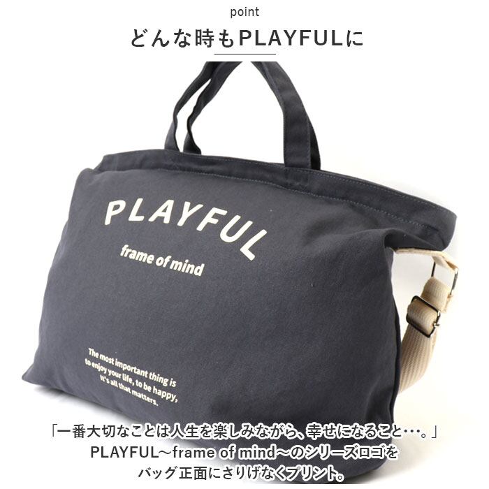 「一番大切なことは人生を楽しみながら、幸せになること・・・。」PLAYFUL~frame of mind~のシリーズロゴをバッグ正面にさりげなくプリント。