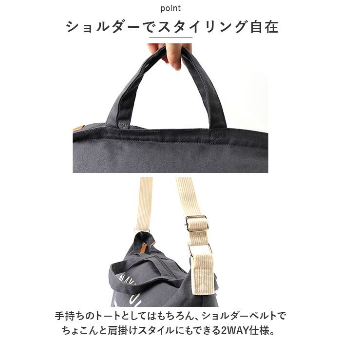 ・手持ちのトートとしてはもちろん、ショルダーベルトでちょこんと肩掛けスタイルにもできる2WAY仕様。