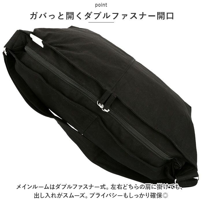 ・メインルームはダブルファスナー式。左右どちらの肩に掛けても、出し入れがスムーズ。プライバシーもしっかり確保◎