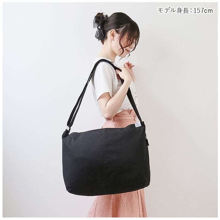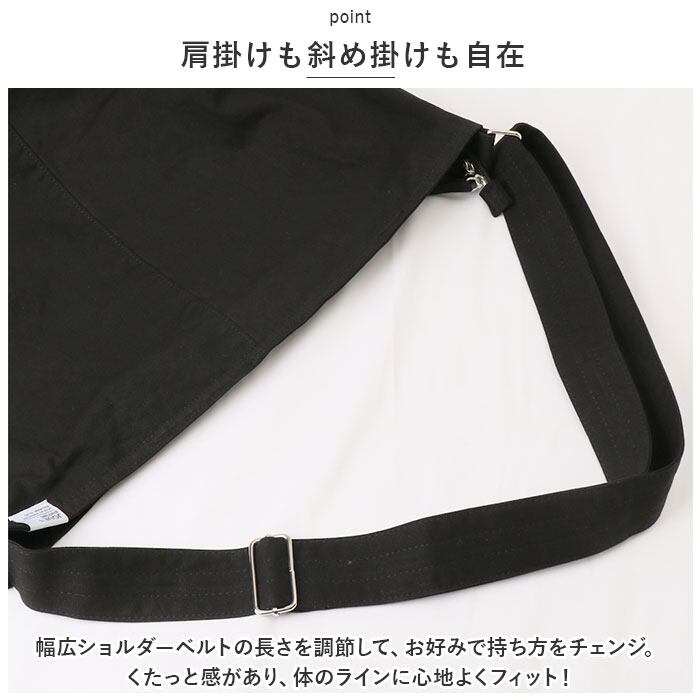 ・幅広ショルダーベルトの長さを調節して、お好みで持ち方をチェンジ。くたっと感があり、体のラインに心地よくフィット!