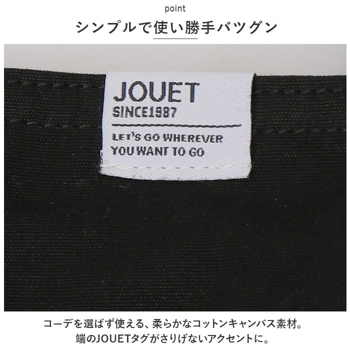 ・コーデを選ばず使える、柔らかなコットンキャンバス素材。センターステッチデザインや、端のJOUETタグがさりげないアクセントに。
