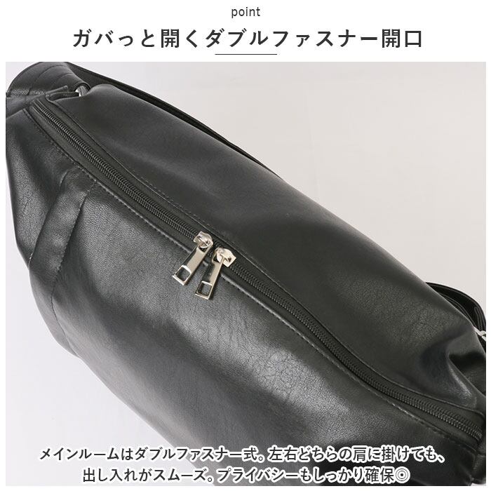 ・メインルームはダブルファスナー式。左右どちらの肩に掛けても、出し入れがスムーズ。プライバシーもしっかり確保◎