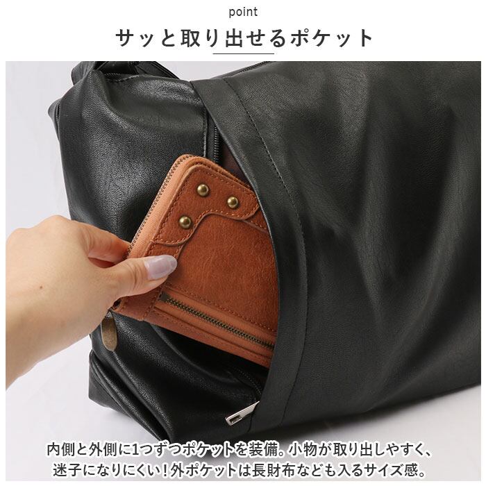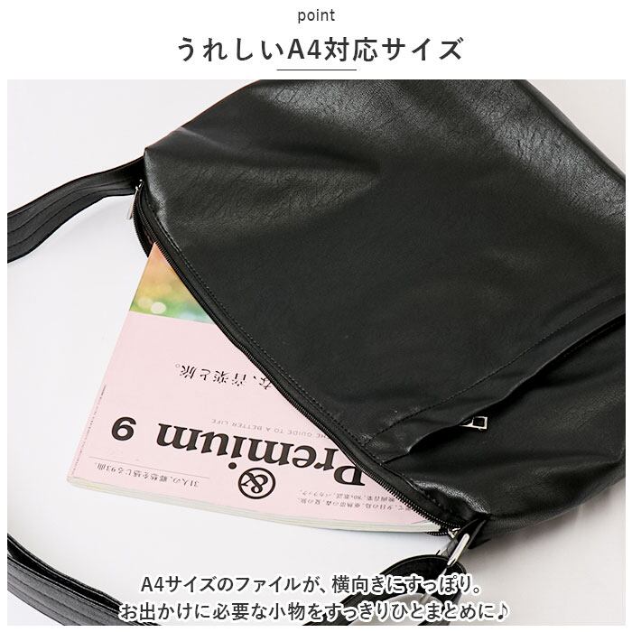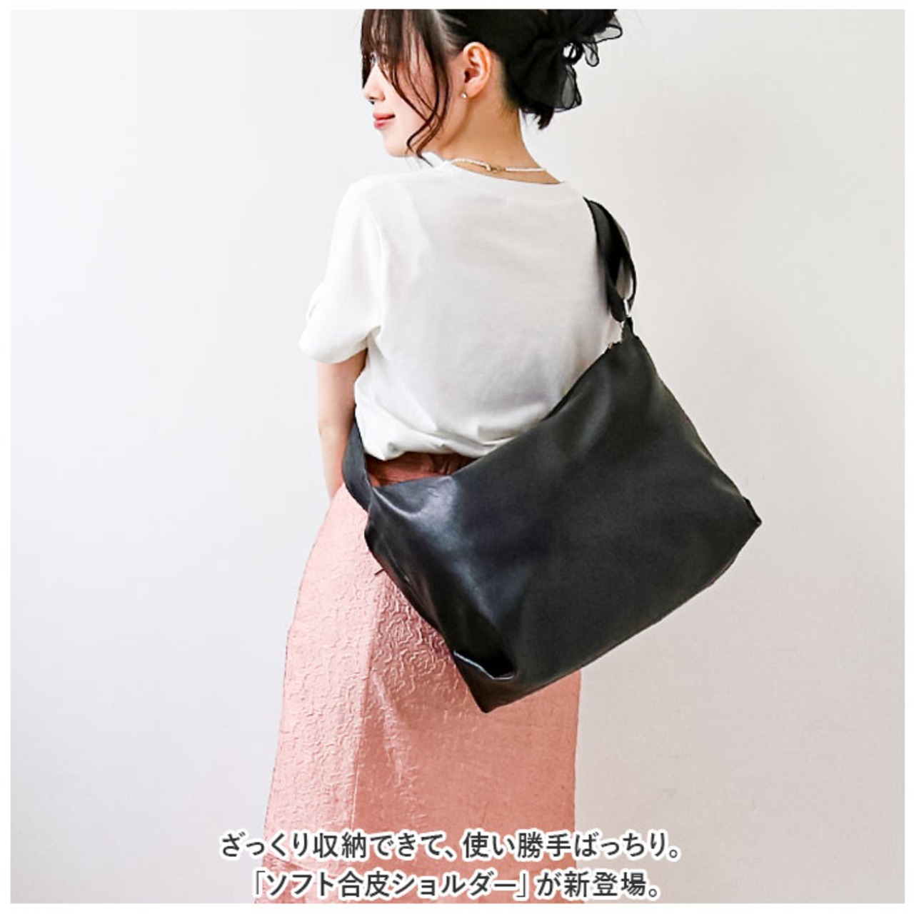 ・ざっくり収納できて、使い勝手ばっちり。「ソフト合皮ショルダー」が新登場。