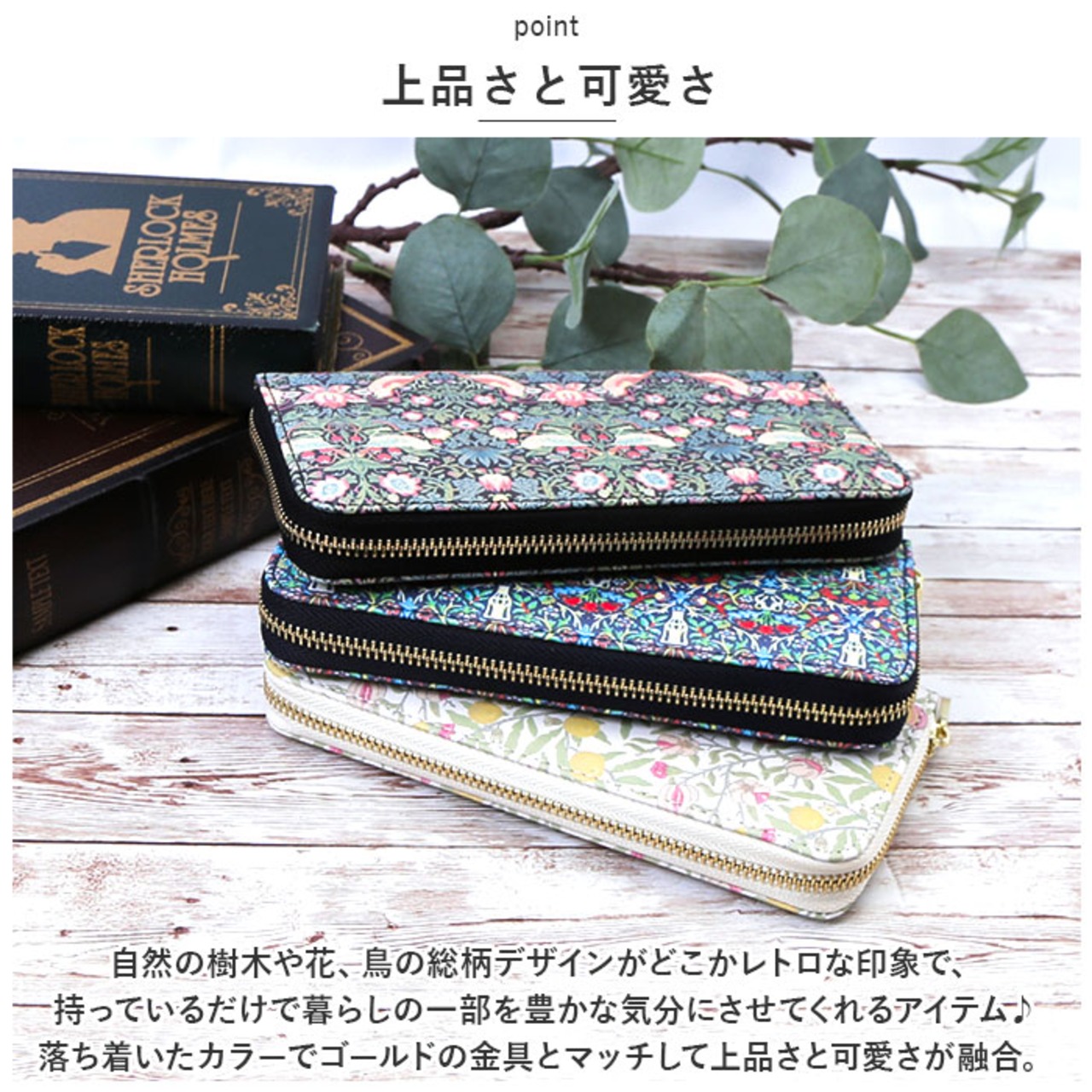 ・自然の樹木や花、鳥の総柄が目を引く、アートプリント長財布の登場。