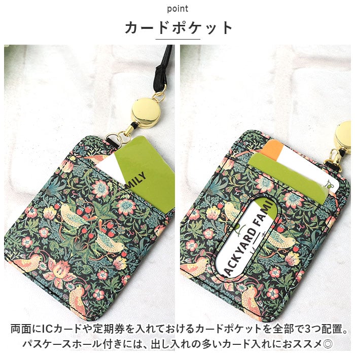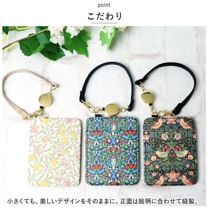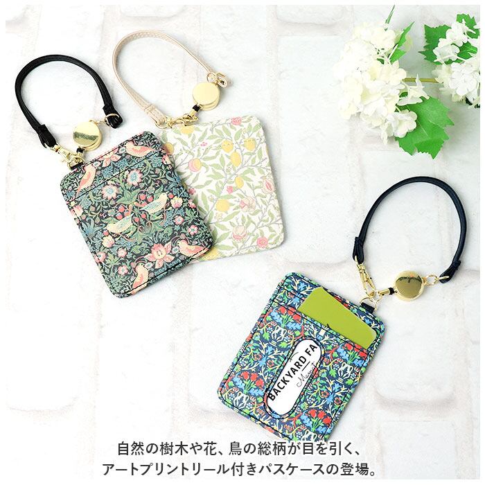 ・自然の樹木や花、鳥の総柄が目を引く、アートプリントリール付きパスケースの登場。