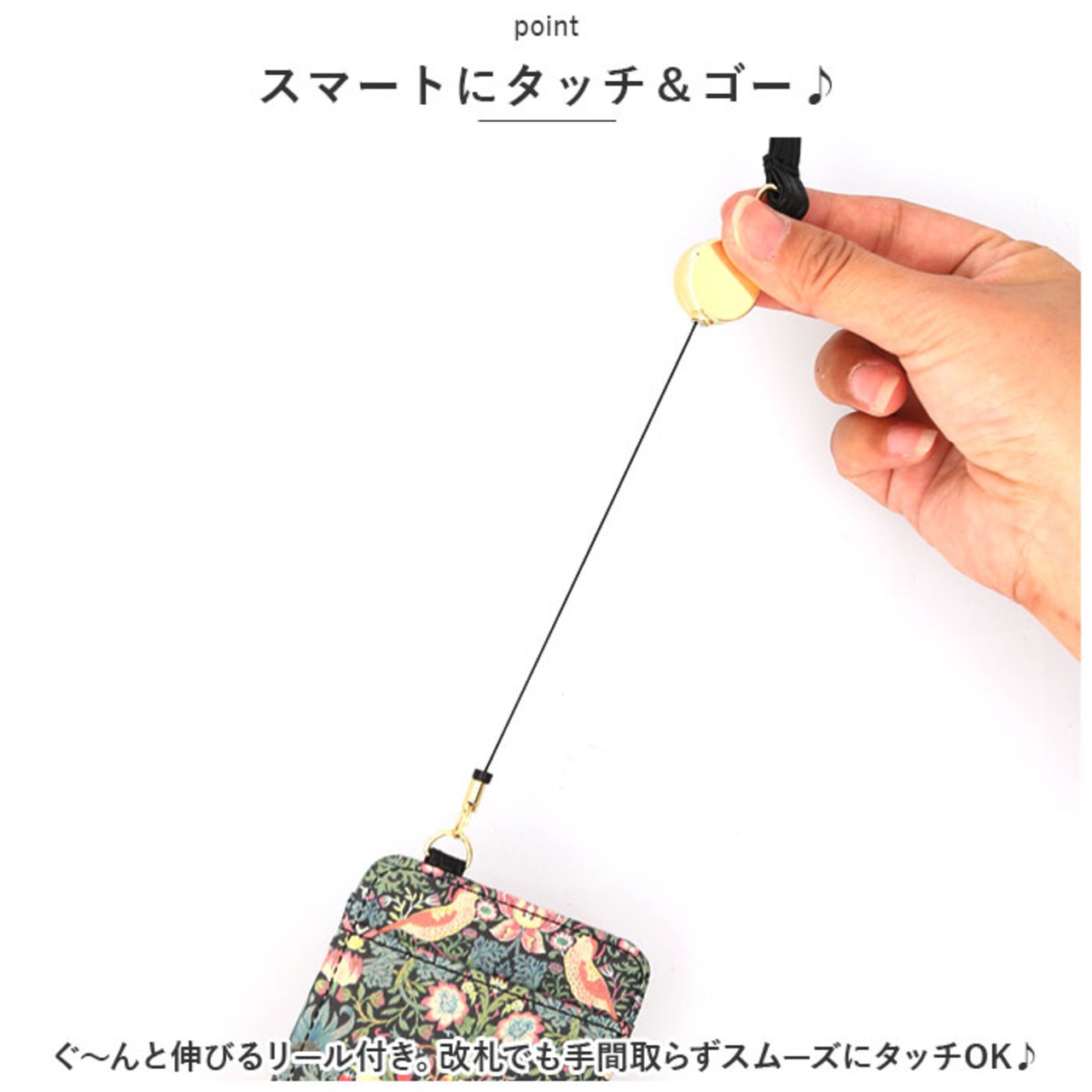 ・ぐ~んと伸びるリール付き。改札でも手間取らずスムーズにタッチOK♪