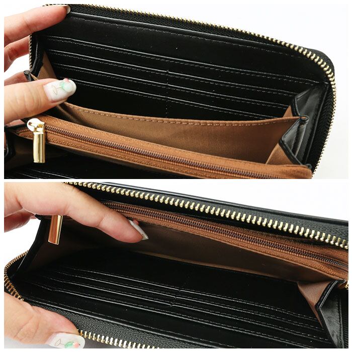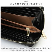 ・L字型ファスナーで開くコインポケットは、中の小銭がひと目で確認できて、コンビニのレジでも慌てずに支払いがスムーズ!