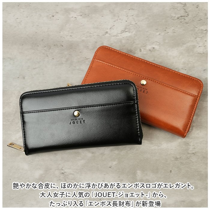 ・艶やかな合皮に、ほのかに浮かびあがるエンボスロゴがエレガント。大人女子に人気の「JOUET-ジョエット-」から、たっぷり入る「エンボス長財布」が新登場