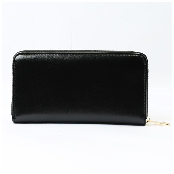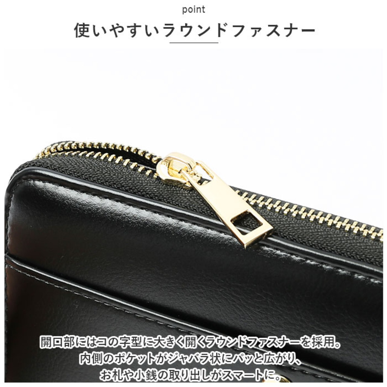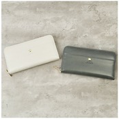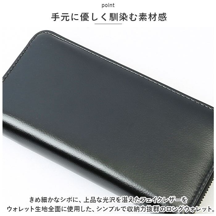 ・きめ細かなシボに、上品な光沢を湛えたフェイクレザーをウォレット生地全面に使用した、シンプルで収納力抜群のロングウォレット。
