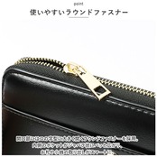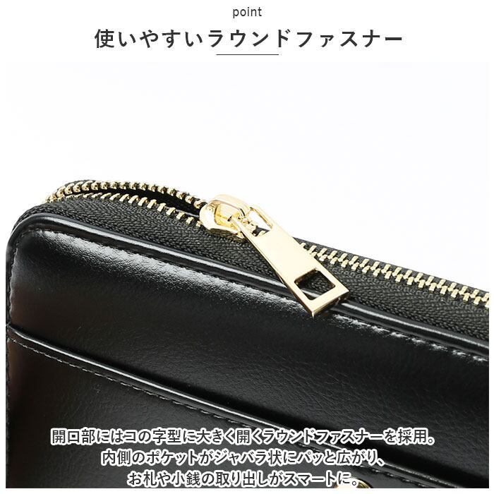 ・開口部にはコの字型に大きく開くラウンドファスナーを採用。内側のポケットがジャバラ状にパッと広がり、お札や小銭の取り出しがスマートに。