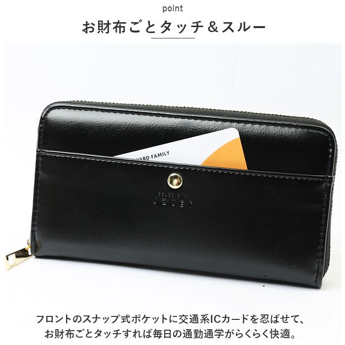 ・フロントのスナップ式ポケットに交通系ICカードを忍ばせて、お財布ごとタッチすれば毎日の通勤通学がらくらく快適。