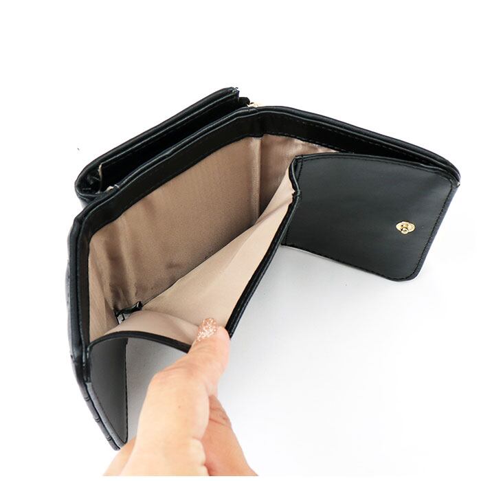 ・コンパクトな三つ折り財布。ミニサイズのカバンやアウターのポケットに収まるサイズ感♪