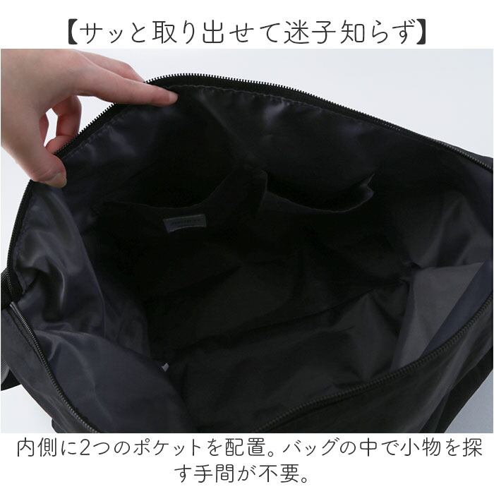・内側に2つのポケットを配置。バッグの中で小物を探す手間が不要。