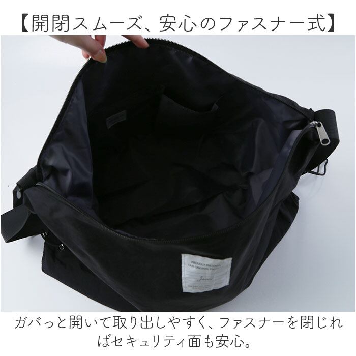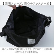 ・ガバっと開いて取り出しやすく、ファスナーを閉じればセキュリティ面も安心。