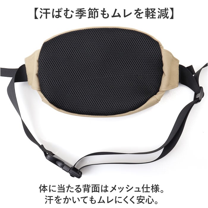 ・体に当たる背面はメッシュ仕様。汗をかいてもムレにくく安心。