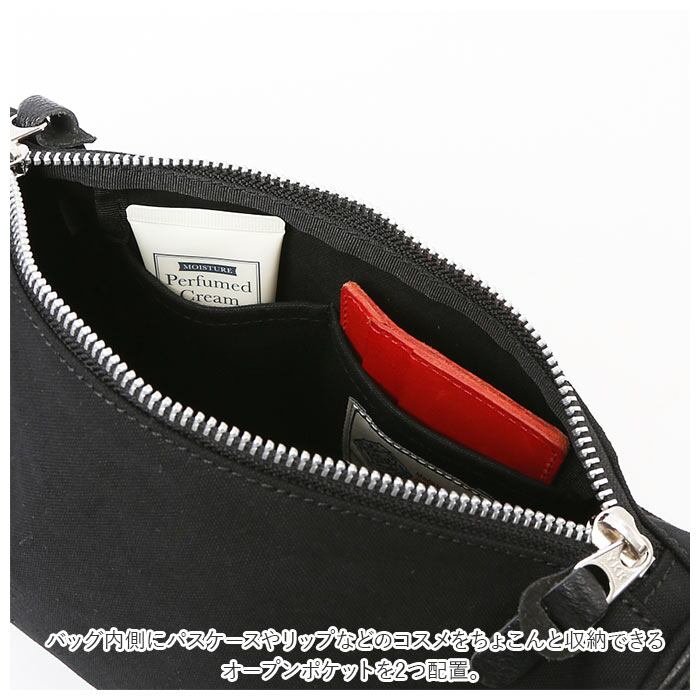 ・バッグ内側にパスケースやリップなどのコスメをちょこんと収納できるオープンポケットを2つ配置。