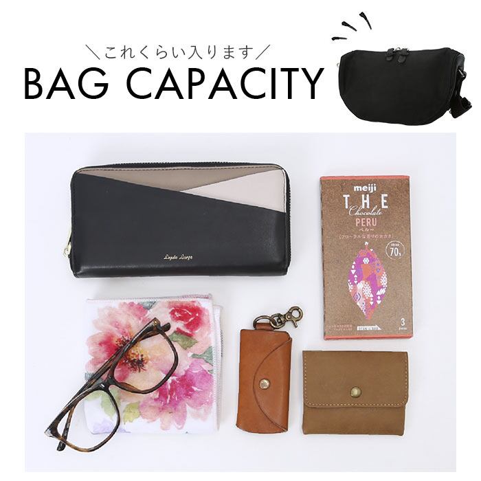 ・収納スペース内部にはスマホや長財布など、いつでも手元に置いておきたい最低限のアイテムが程よく収まるサイズ感。