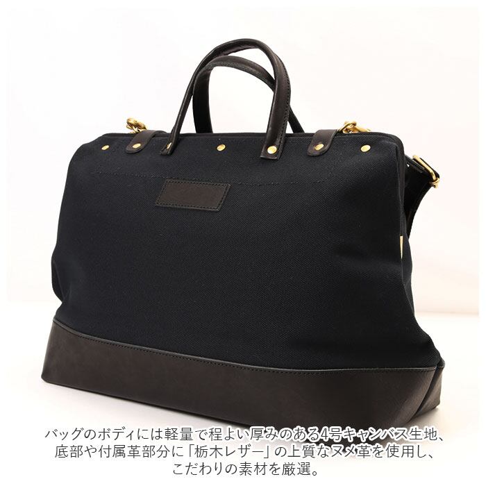 ・バッグのボディには軽量で程よい厚みのある4号キャンバス生地、底部や付属革部分に「栃木レザー」の上質なヌメ革を使用し、こだわりの素材を厳選。