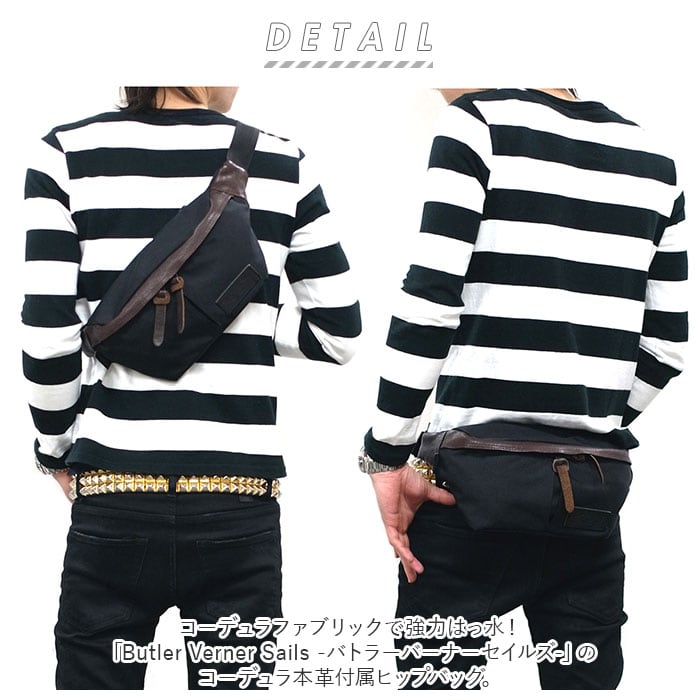 ・コーデュラファブリックで強力はっ水!「Butler Verner Sails -バトラーバーナーセイルズ-」のコーデュラ本革付属ヒップバッグ。
