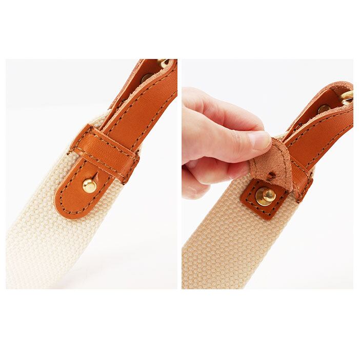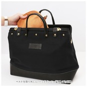・付属のコットンベルトのショルダーで斜め掛けに。ベルト長さを短めに調整すればボディバッグ風にもアレンジできて、スタイリング自在。ベルトを取り外して、バッグインバッグにしてもOK!