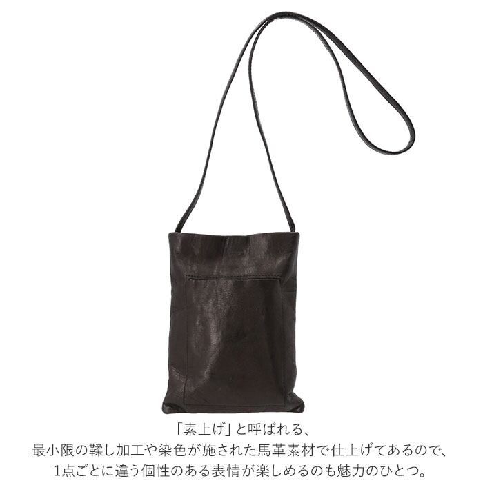 「素上げ」と呼ばれる、最小限の鞣し加工や染色が施された馬革素材で仕上げてあるので、革本来の温かみのある風合い、1点ごとに違う個性のある表情が楽しめるのも魅力のひとつ。安心のMade in Japan製品。