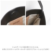 ・ショルダーベルト接合部のマルカンには、お気に入りのチャームやキーホルダーを付けてデコレーションしてもOK!