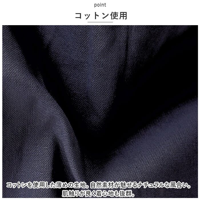 ・コットンを使用した薄めの生地。自然素材が魅せるナチュラルな風合い。肌触りが良く着心地も抜群。