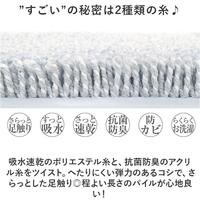 ・マット裏は滑りにくい素材で、いや~なズレを軽減。カビを抑制する防カビ機能もプラス。(※全ての細菌・カビ菌に対して効果があるわけではありません。)