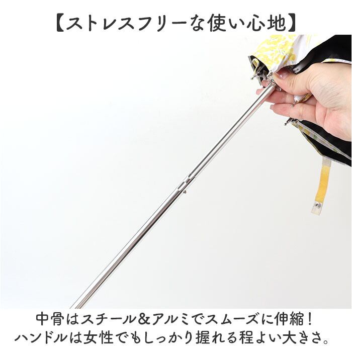 ・中骨はスチール&アルミでスムーズに伸縮!ハンドルは女性でもしっかり握れる程よい大きさ。