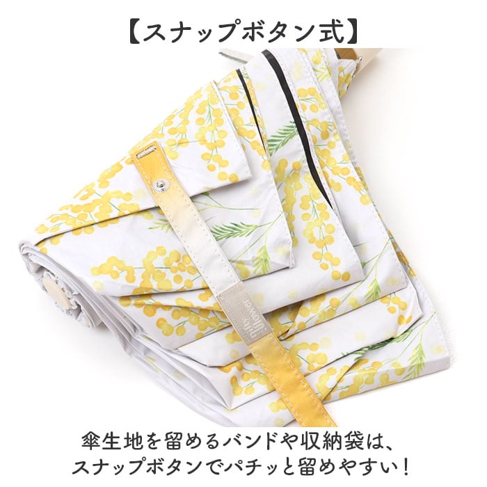・傘生地を留めるバンドや収納袋は、スナップボタンでパチッと留めやすい!