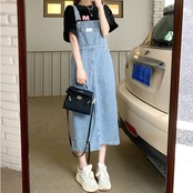 デニム サロペット スカート 通販 ジャンパースカート デニムサロペット サロペットスカート デニムスカート デニムサロペットスカート マキシワンピース ワンピース オーバーオール ゆったり ハイウエスト レディース H型 きれいめ ポケット 春 夏 おしゃれ