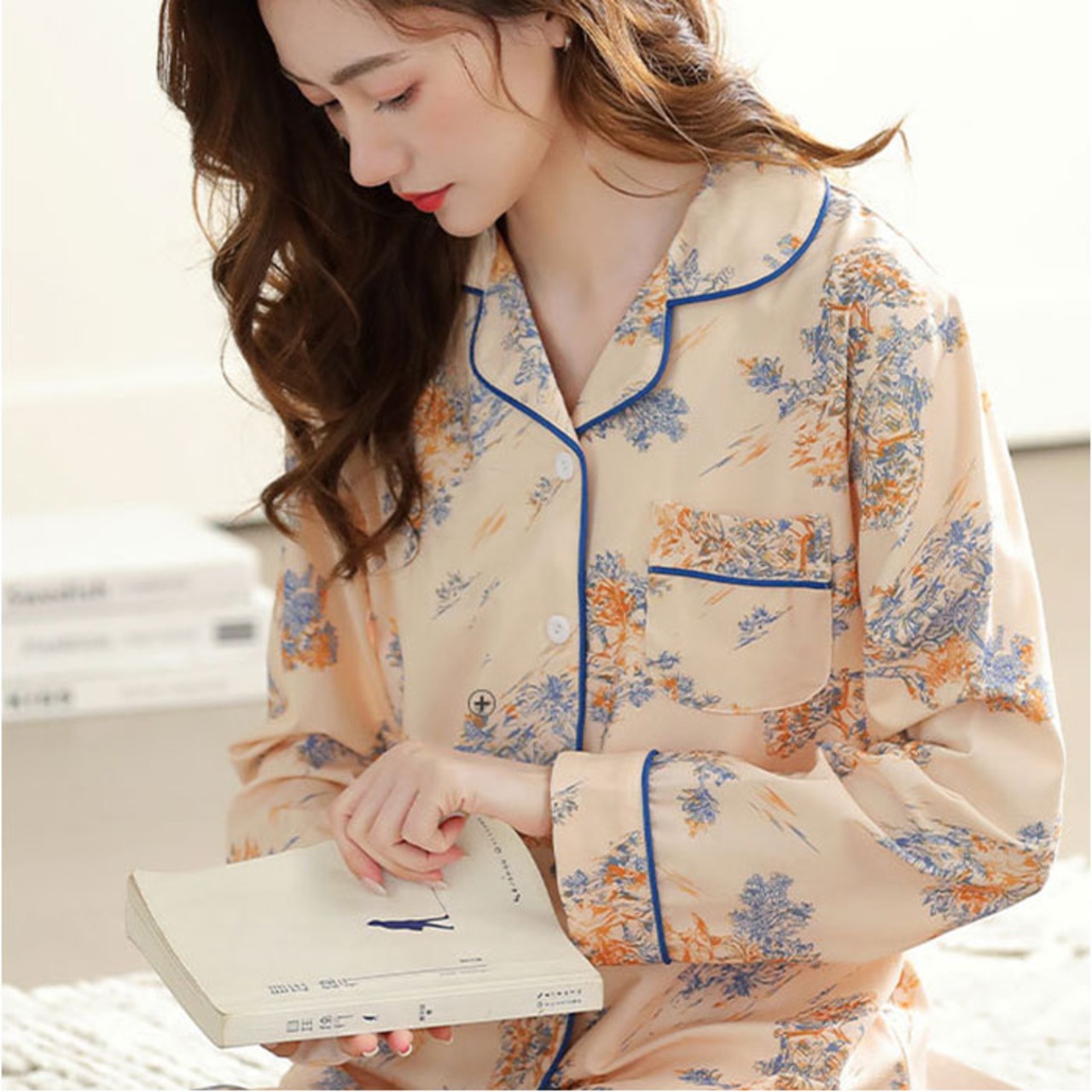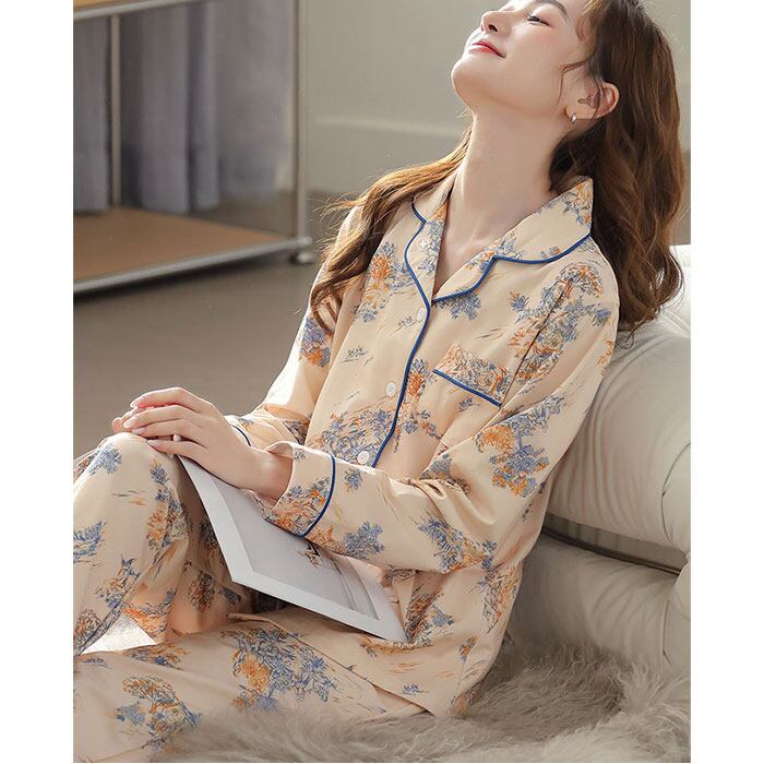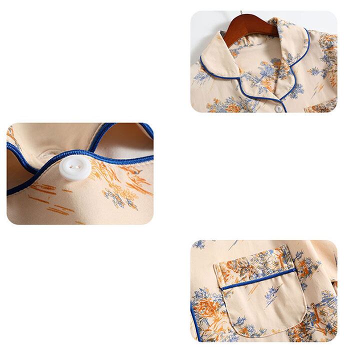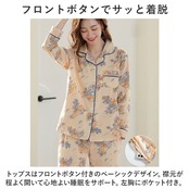 ・トップスはフロントボタン付きのベーシックデザイン。襟元が程よく開いて心地よい睡眠をサポート。左胸にポケット付き。