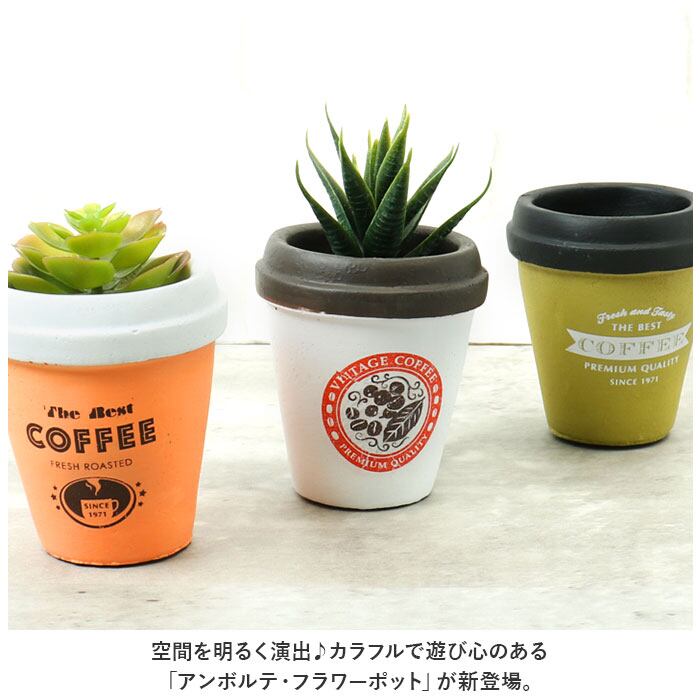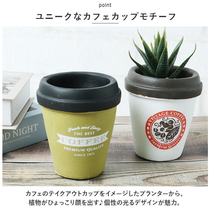 ・カフェのテイクアウトカップをイメージしたプランターから、植物がひょっこり顔を出す♪個性の光るデザインが魅力。