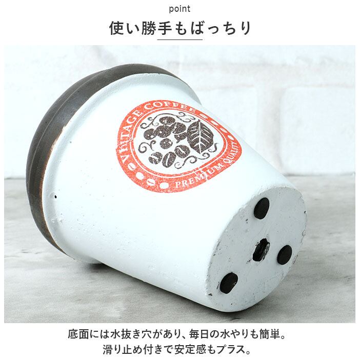 ・底面には水抜き穴があり、毎日の水やりも簡単。滑り止め付きで安定感もプラス。
